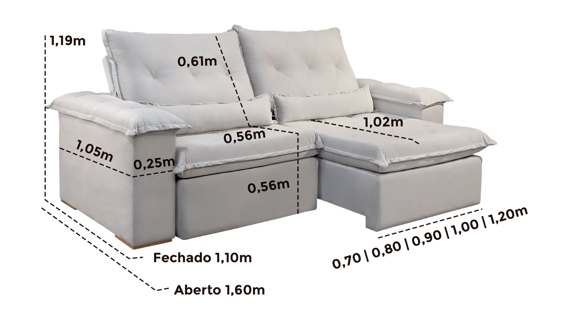 • Braços preenchidos com fibra de silicone, proporcionando toque macio e conforto lateral adicional.