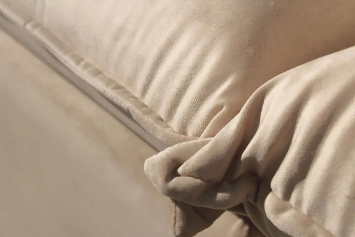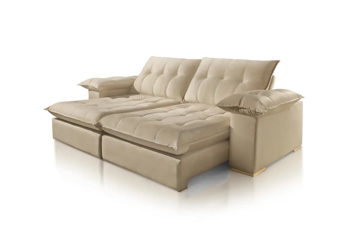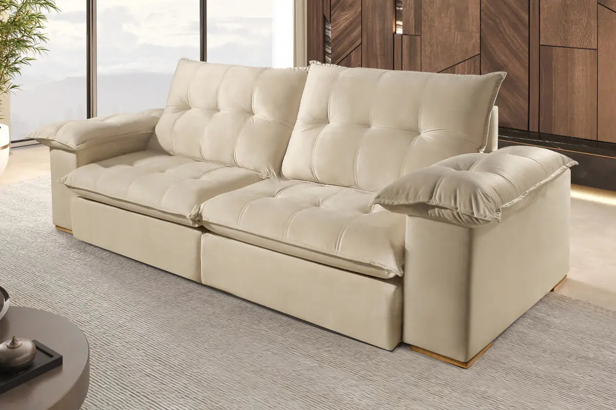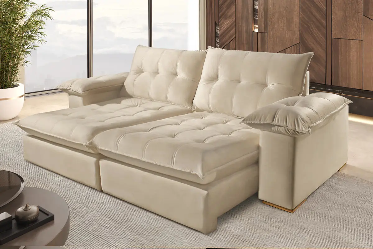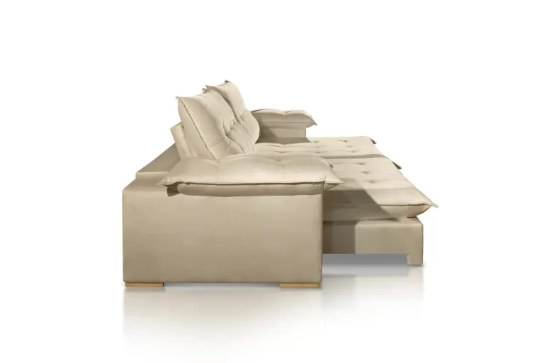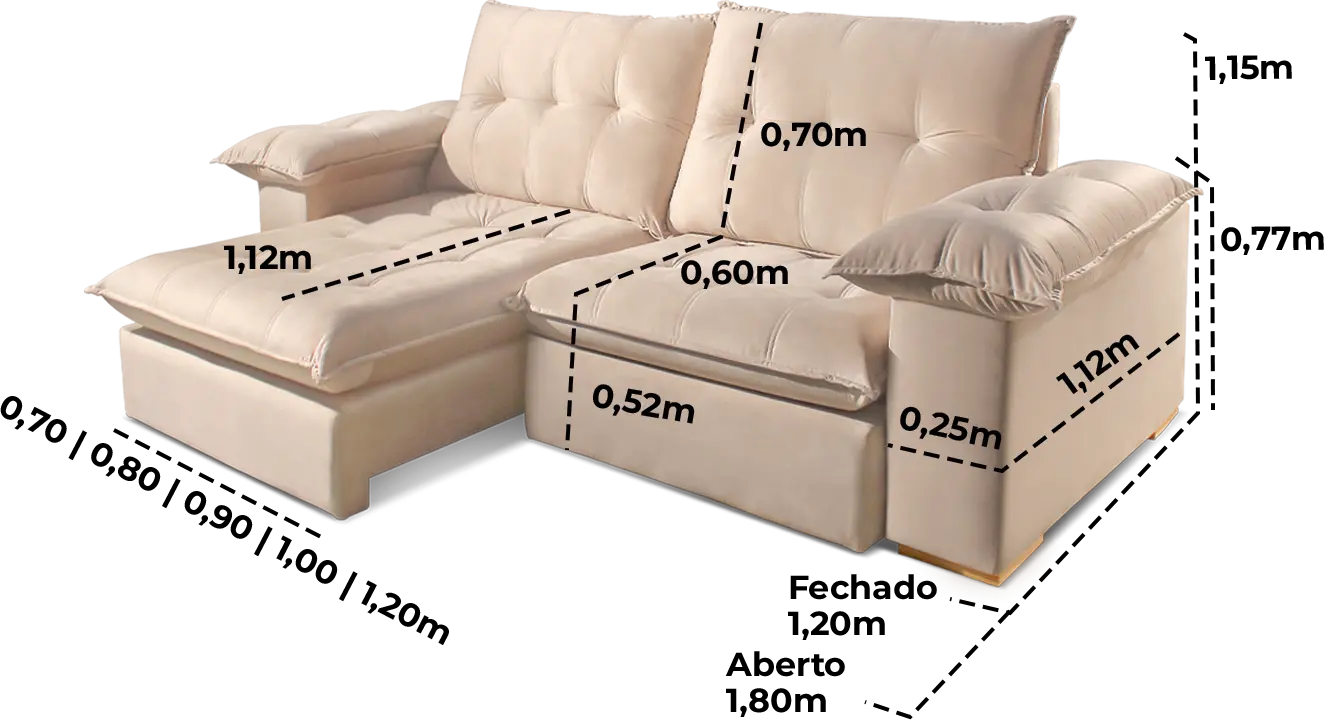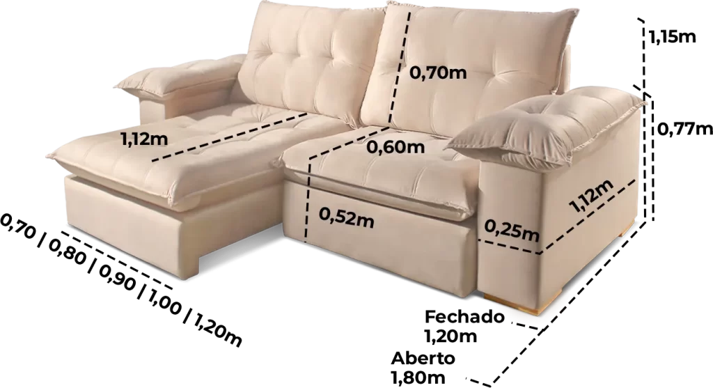 Braços preenchidos com fibra de silicone, oferecendo toque macio e maior conforto lateral.