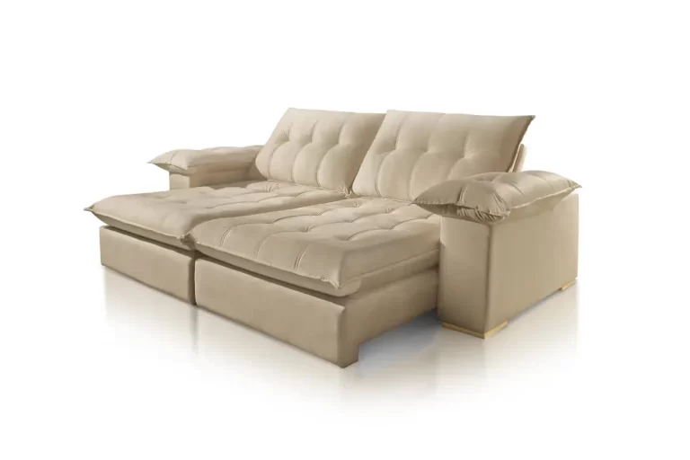 Assento com 20 cm de espessura em espuma SOFT D28, proporcionando conforto e suporte adequados ao uso diário, com opção de sistema de molas ensacadas para maior performance e durabilidade.