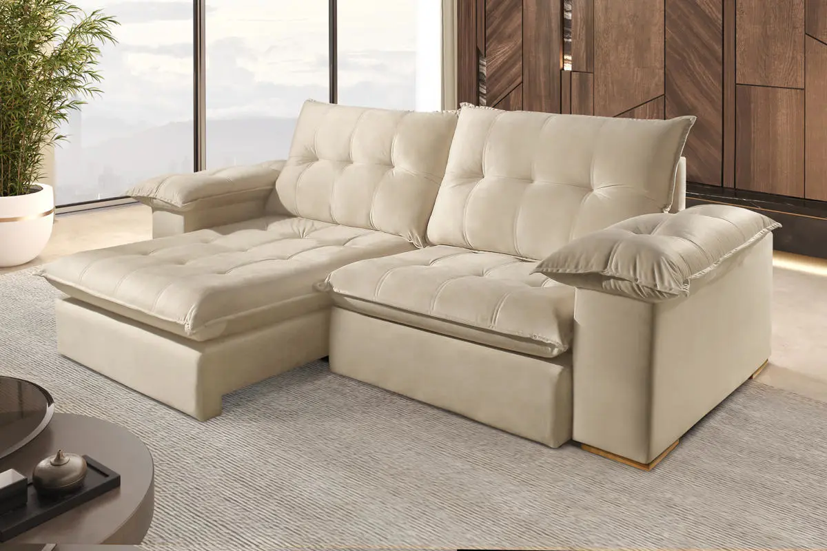 Almofadas do encosto preenchidas com fibra de silicone, assegurando maciez, volume e excelente acomodação.